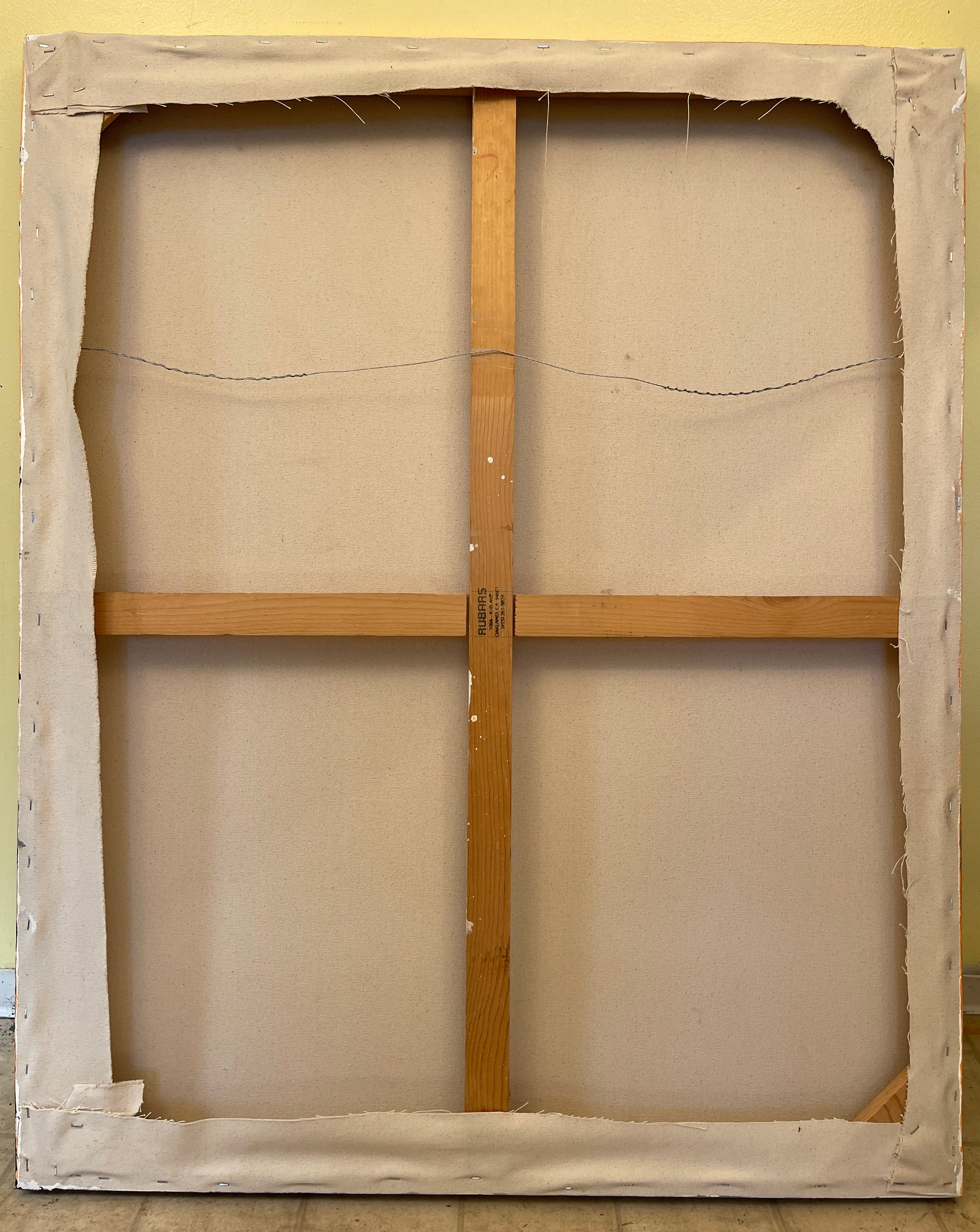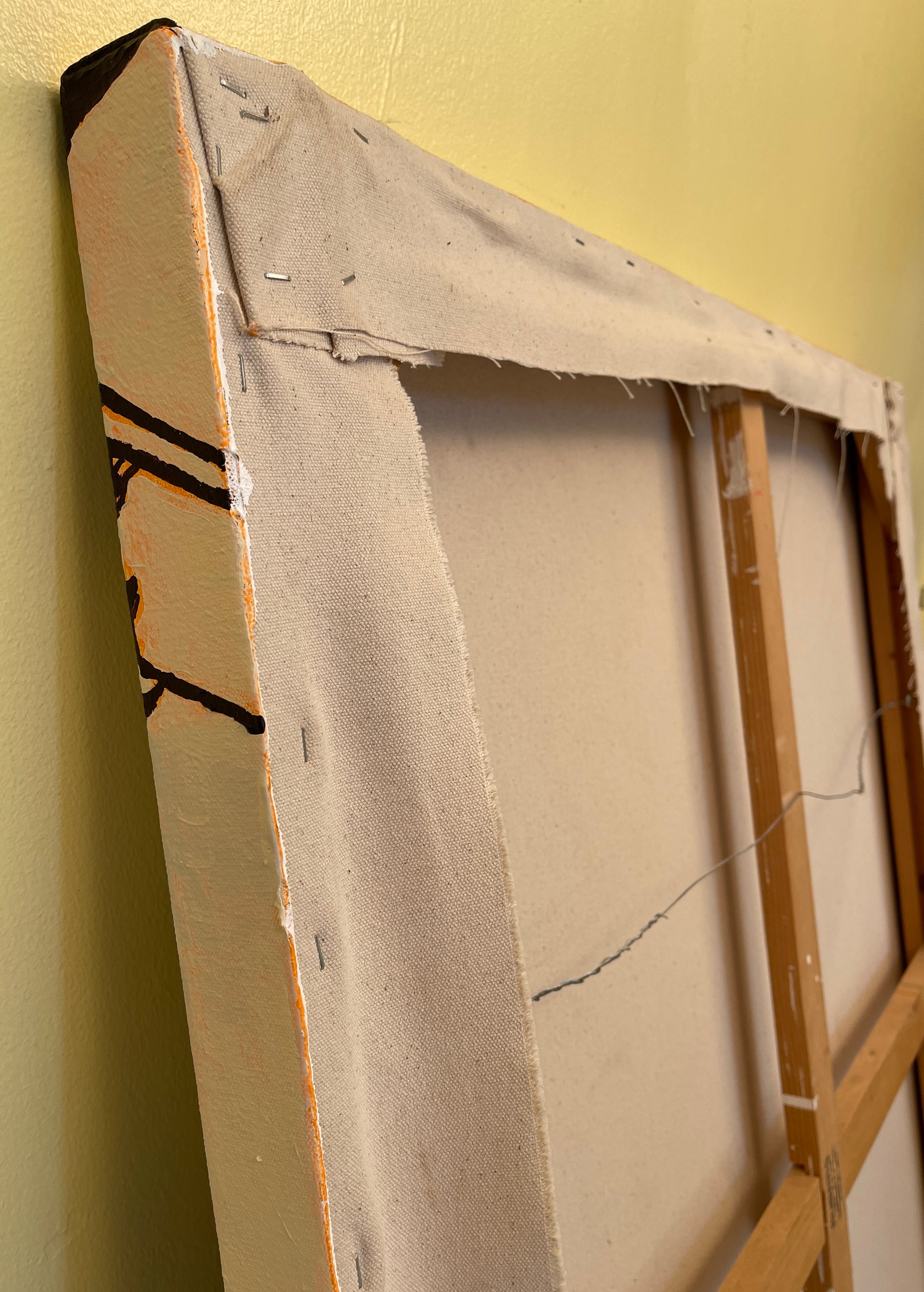 This 36" by 44" acrylic canvas painting is stretched on a 2" professional hardwood frame. It is a substantial frame that won't warp and appears complete without being framed. See detail pictures.